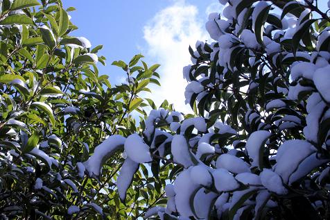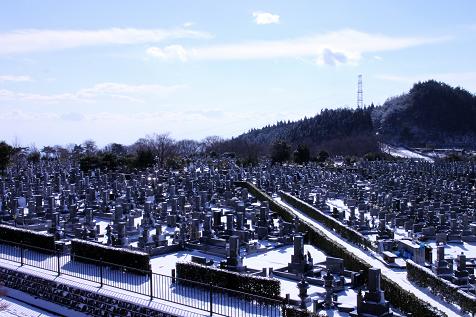 年越し寒波で雪化粧した元旦の北摂霊園。