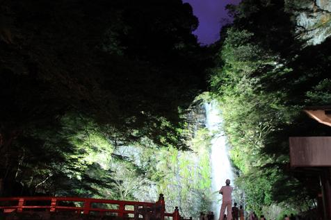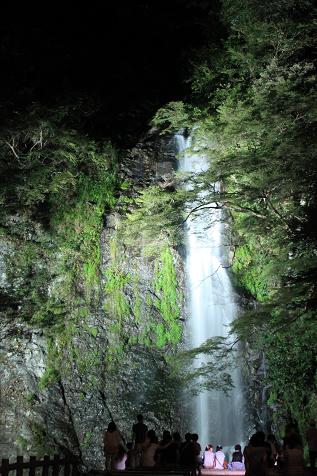 8月も終わりの夕べ、ライトアップされた箕面の滝へ、夕涼みに行きました。