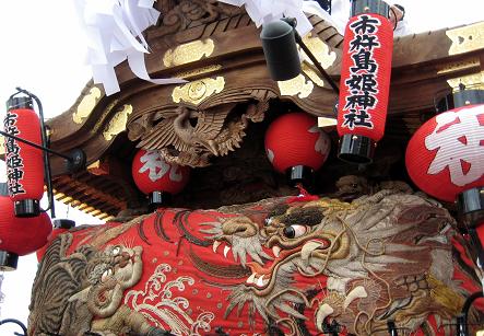 宝塚だんじり最大の特徴の後方刺繍幕も、間近で皆様にご披露できました。