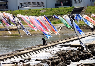 猪名川にかかった〔鯉のぼりの川渡し〕