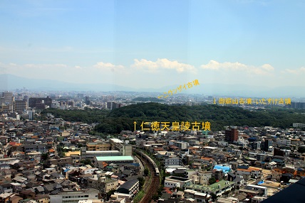 中百舌鳥古墳群や遠くに六甲山、関西空港、生駒山、金剛山など