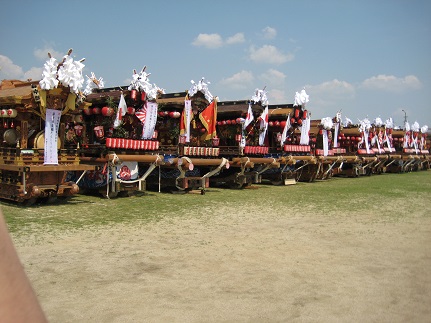 だんじりを村から曳いて練り歩いたので・・・