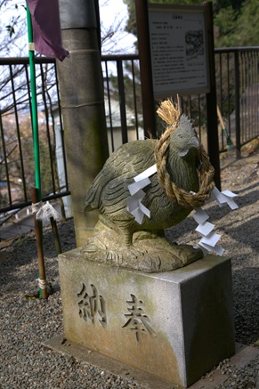 境内では、天照大神が天の岩戸に籠られた際、お出ましを願って鳴かせたという