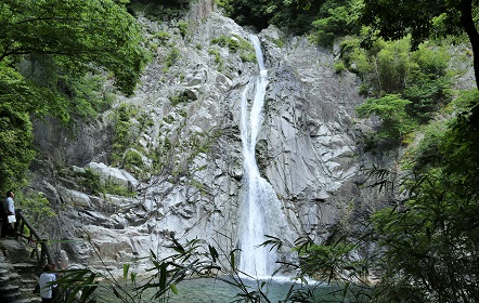 木々で隠され水の音を楽しむ、鼓が滝(つつみがたき)
