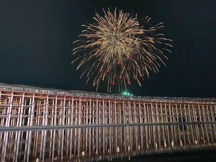 日が落ちるのを待って、花火と水上ショー、ドローンショーが見られただけでも、